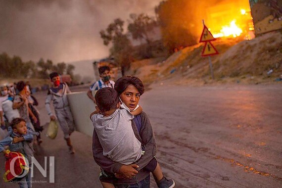 Unicef-Foto des Jahres 2020 zeigt Kinder vor dem brennenden Flüchtlingslager Moria